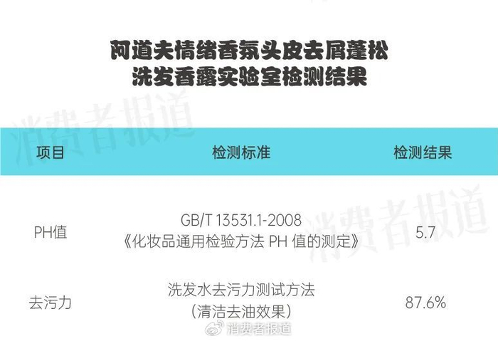 除了去屑效果,本刊还委托权威实验室对这款洗发水的PH值和去污力进行了检测。