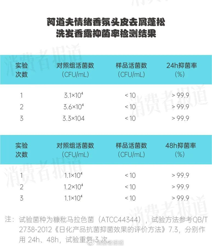 结果显示,经3次重复试验,这款阿道夫情绪香氛头皮去屑蓬松洗发香露对马拉色菌的24小时与48小时的抑菌率均高达99.9%,有头屑烦恼的消费者可放心使用。