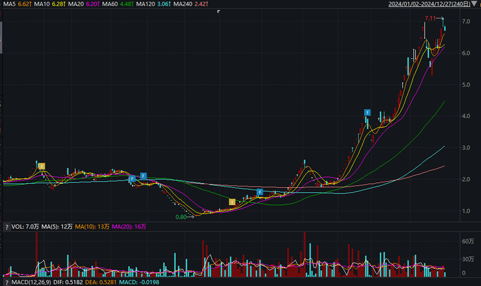 *ST景峰以27个连续交易日上涨,断层列位2024年A股市场连续上涨天数最多的公司,同时公司2024年期间涨停交易日高达83个,同样全A居首。