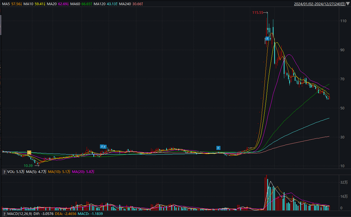 *ST景峰跌停的时间也不少,全年有57个跌停。也就是说,在2024年截至12月20日的240个交易日中,公司股价有近六成交易日不是涨停就是跌停。期间还有过停牌。