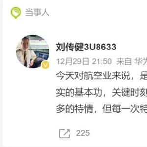 《中国机长》原型机长刘传健就韩国客机失事发声