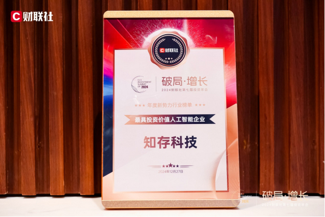在 2024 财联社第七届投资年会上,备受瞩目的 “2024 年度资本市场最具价值影响力榜单” 现场揭晓。其中,知存科技脱颖而出,荣膺最具投资价值人工智能企业这一殊荣。该榜单结合详实的数据分析、科学合理的评价指标体系,以及来自各行各业资深专家组成的评审团意见进行综合评定,表彰那些在过去一年里表现出色的企业和个人,梳理行业标杆。