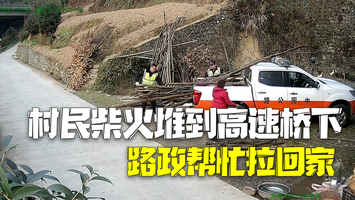 一村民将柴火堆放到高速公路桥下,路政巡查发现有安全隐患,就通知村民搬走。因村民没货车,路政开皮卡帮忙搬运。当事村民罗先生称,一共运了5趟,运完后路政还帮忙全部搬到家门口堆好码好,离开时他们连一口茶水也没喝,当时特别感动。