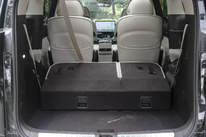 第三排亮点不少,座椅能前后调节,靠背角度也可调整,中央扶手在 MPV 车型中也不多见。标配电动尾门,空间很大,只是座椅变化全为手动调节,如果第二排座椅往后调太多,放倒第三排就会增加一个步骤。后备厢空间很大,为 410 升至 2310 升,对于家庭用户来说,搬个家都不用再叫车,多跑两趟就能搞定,更不用说周末出去露营,能携带的东西就更多了。