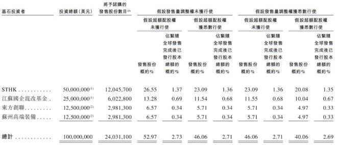 英诺赛科基石投资者分别为STHK、江苏国企混改基金、东方创联、苏州高端装备,一共认购1亿美元,其中,STHK认购5000万美元,江苏国企混改基金认购2500万美元,东方创联、苏州高端装备分别认购1250万美元。