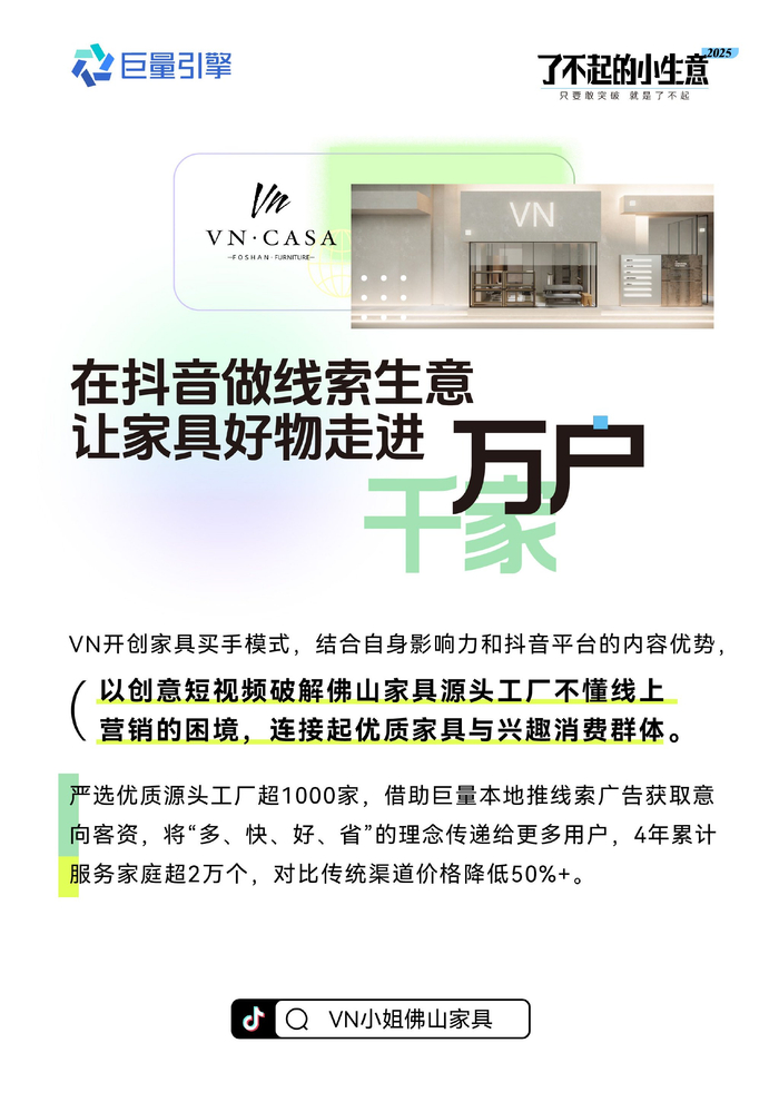 VN小姐的公司迅速增长的客源背后,离不开巨量引擎本地推等工具的助力。