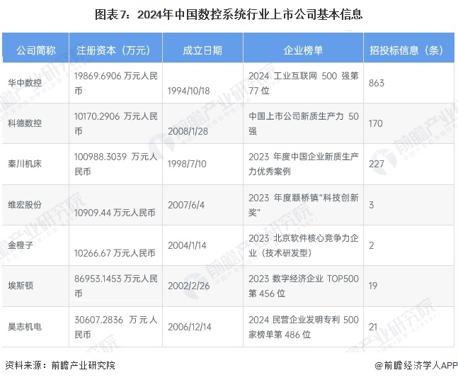 从数控系统上市企业布局和已有公开信息分析,注册资本最多的是秦川机床、成立时间最早的和招投标信息最多的是华中数控。
