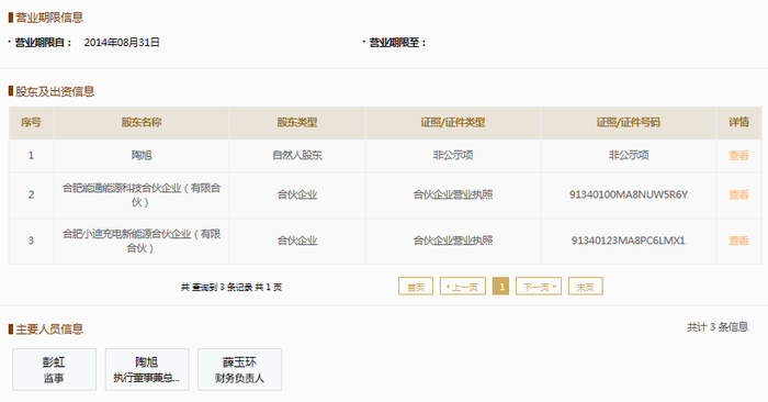 国家企业信用信息公示系统显示,安徽能通新能源科技有限公司成立于2014年,注册资本5166.6667万元人民币,法定代表人陶旭。