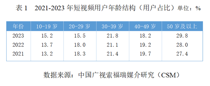 伴随着用户增速的衰退,短视频用户结构也正迎来新的变化,“一老一小”成为短视频用户的新增主力。从2021年至2023年,10-19岁短视频用户比例从13.2%提升至15.2%,50岁以上短视频用户比例从27.4%增长至29.8%,而同期20-49岁不同年龄段的短视频用户比例却呈下降趋势或基本稳定。