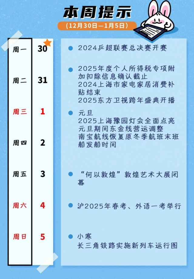 跨年活动精彩纷呈,个人所得税专项附加扣除信息确认明天截止……本周提示来了!