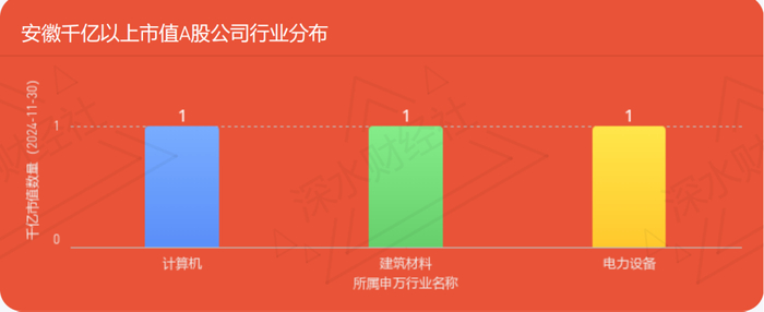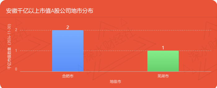 截至11月30日,安徽共有3家千亿市值A股公司,分别是阳光电源、海螺水泥、科大讯飞,分别位于合肥、芜湖和合肥,分别属于电力设备、建筑建材和计算机行业。