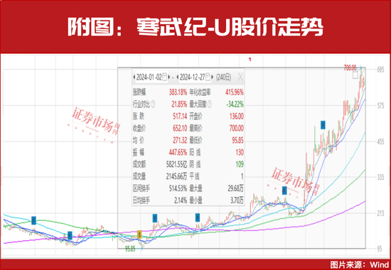 12月30日,算力板块继续表现强势,云赛智联、数据港相继涨停,莲花控股盘中也一度触及涨停,盛弘股份、杭钢股份、奥飞数据等纷纷跟涨。拉长统计周期看,算力板块年内(至12月27日,下同)同样表现不俗,多只个股实现大涨,其中涨幅最高的是寒武纪-U已达383.18%,且目前来看,公司仍在上升趋势中(见附图)。