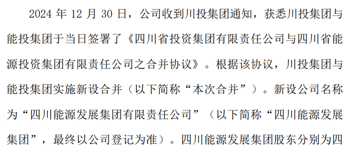 根据公告,合并前川投集团与能投集团的全部资产、负债、业务、人员、合同、资质及其他一切权利与义务由四川能源发展集团承继、承接或享有,合并前川投集团与能投集团的下属分支机构及所持有的下属企业股权、股份或权益归属于四川能源发展集团。
