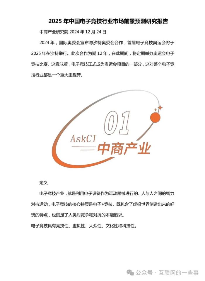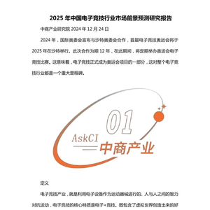 报告 | 2025年中国电子竞技行业市场前景预测研究报告(附下载)