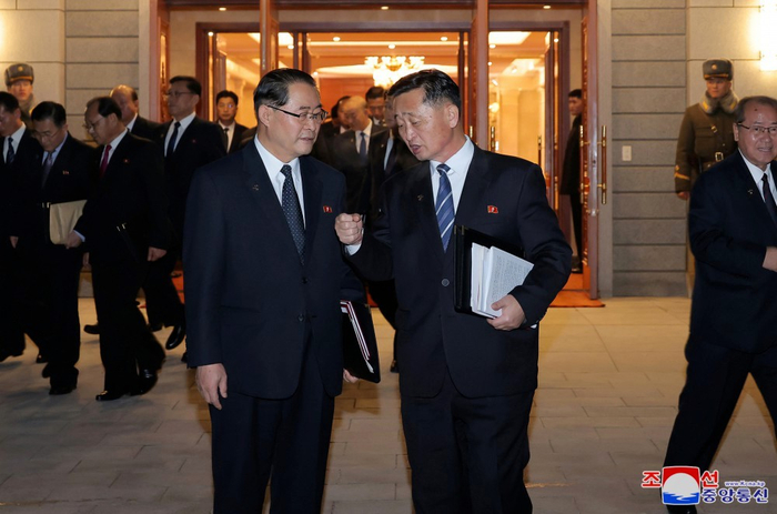 值得关注的是,朝中社12月29日发布本次会议的照片时,刊发了多张金德训、朴泰成亲密交流的图像;朝鲜中央电视台在当天的报道中,也呈现了金德训、朴泰成并肩走过走廊的画面。