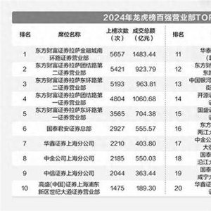 步入年末,2024年A股成交额龙虎榜百强营业部也随之揭晓。