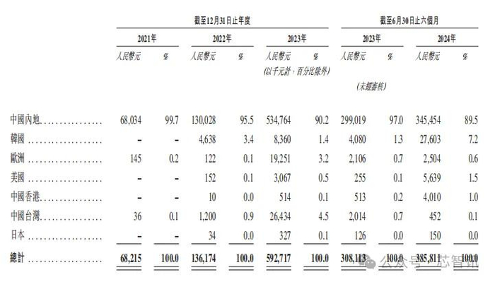 2024年上半年,英诺赛科来自境外的销售收入占比增加到了10.5%,销售金额达到了4040万元。其中,增长最大的国家是韩国,占比提升到了7.2%,金额达2760.3万元。来自中内地的占比虽然略微降低到了89.5%,但是销售额达到了约3.45亿元,同比增长约15.5%。