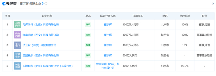 目前,董宇辉关联的企业达5家。