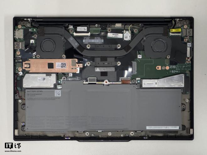 按照惯例,性能测试前我们先拆机看看它的内部散热设计。联想 ThinkPad X1 Carbon 2025 Aura D 面仅有 4 颗螺丝固定,卸下后撬开 D 壳,整体布局干净整洁,不过空间利用率并不高,主板尺寸较大,没有发挥出 200V 平台封装内存的优势。不过 ThinkPad X1 Carbon 2025 Aura 较大的主板尺寸也不完全是坏处,其还预留了一个半高的 M.2 硬盘位供用户拓展储存空间。散热方面,联想 ThinkPad X1 Carbon 2025 Aura 采用双风扇单热管的散热配置,这对于 17W TDP 的 Ultra 7 258V 来说看似够用,其性能释放表现我们一会烤机环节再说。