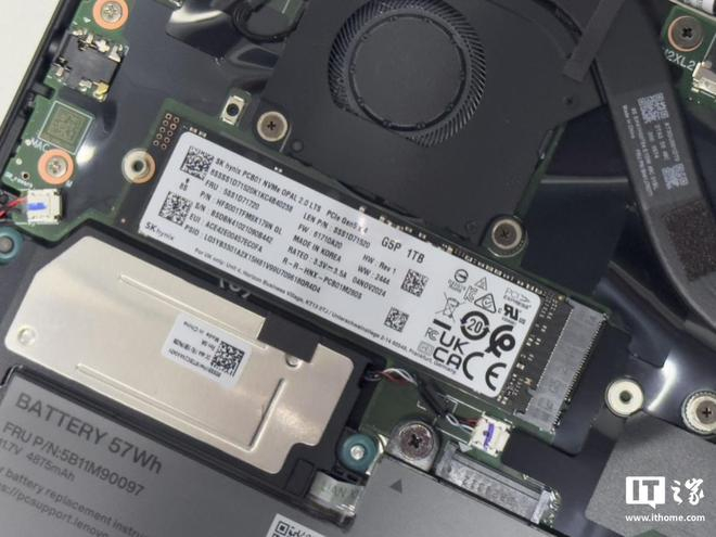 联想 ThinkPad X1 Carbon 2025 Aura 是首款搭载 NVMe PCIe 5.0 SSD 的笔记本,其内置硬盘为海力士 PCB01,容量为 1TB。联想为了保证这块 PCIe 5.0 硬盘的稳定性增加了导热垫和铜质装甲,加速散热。
