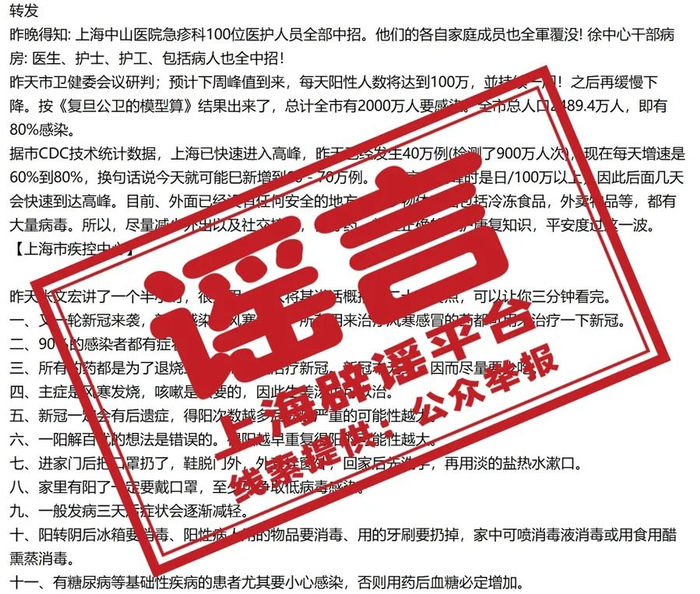 2023年5月30日,上海辟谣平台就曾经辟谣过类似传言,文字措辞几乎都一模一样。