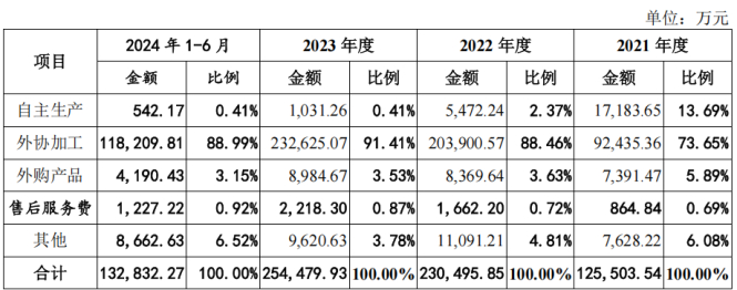 此外,报告期内,汉朔科技采用以外协加工为主、自主生产为辅的生产模式,外协加工模式下,该公司直接向外协加工厂采购电子价签终端等整机产品。报告期各期,整机外协加工数量占整机产品总入库数量比例分别为89.57%、99.19%、99.83%和99.91%。
