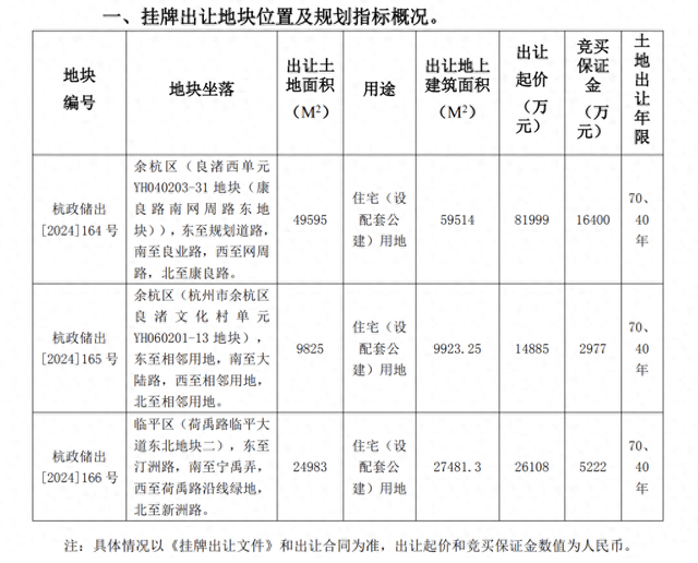 根据地块出让信息,此次出让的3宗地块分别位于余杭区(2宗)、临平区(1宗),地块实行自由竞价,按照价高者得的原则确定竞得人。