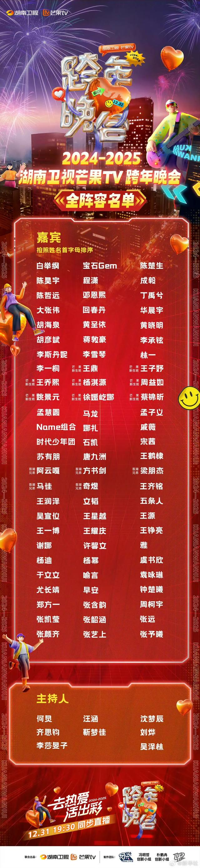 主持阵容:何炅、汪涵,沈梦辰、齐思钧、靳梦佳、刘烨、李莎旻子、吴泽林。