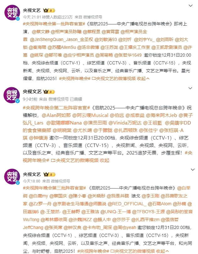 2025年的各大跨年晚会
