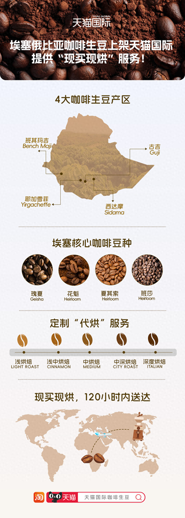 天猫国际上线埃塞四大产区进口咖啡生豆,可为消费者“现买现烘”