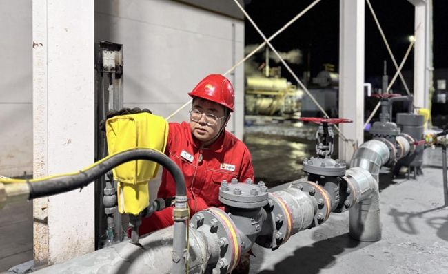 “魏书记,你这一天巡检下来,步数能走2万多吧。”巡检时站上老师傅王树军说道。“哈哈,这有啥,元旦到了,站库要多巡几次,我才能安心呀……排量下来了,可以清过滤网了。”魏龙看着外输流量计说道,随即便提起放空桶,拿上扳手、棉纱奔向泵房更改流程。卸螺丝、放空、取滤网、清滤子……他灵活地挥舞着手中的扳手,操作快速又标准。