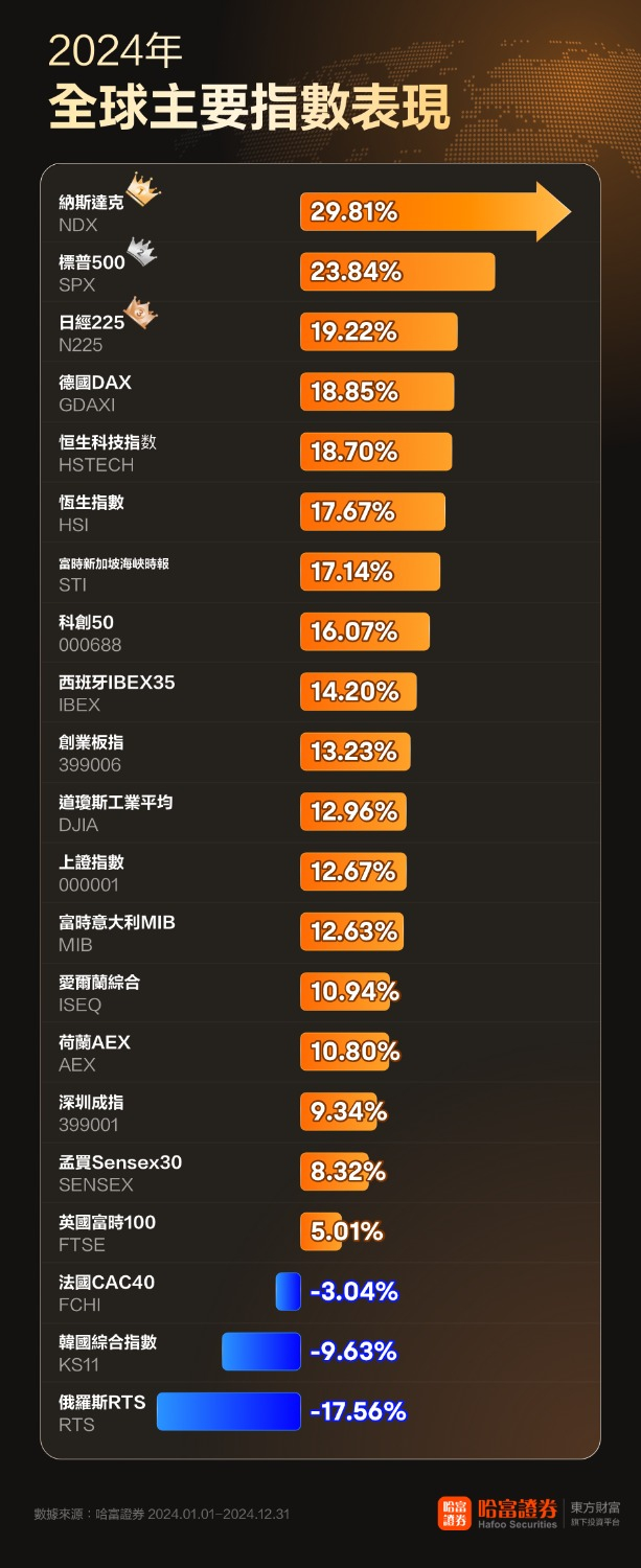 2024全球指数年终盘点:美股独占鳌头 港A市场“先抑后扬”