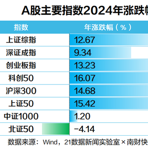 2024年A股正式收官:沪指全年涨超12%,94股翻倍 这些板块大涨(附名单)