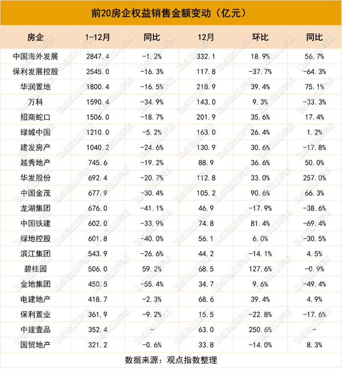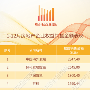 重磅发布丨2024年1-12月房地产企业销售表现