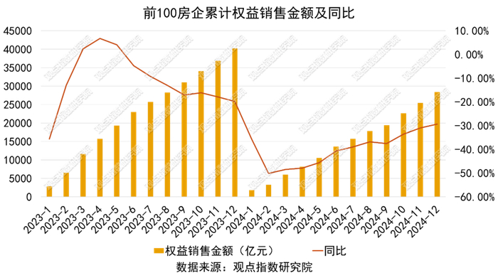 前100房企全年累计全口径和权益销售降幅达三成
