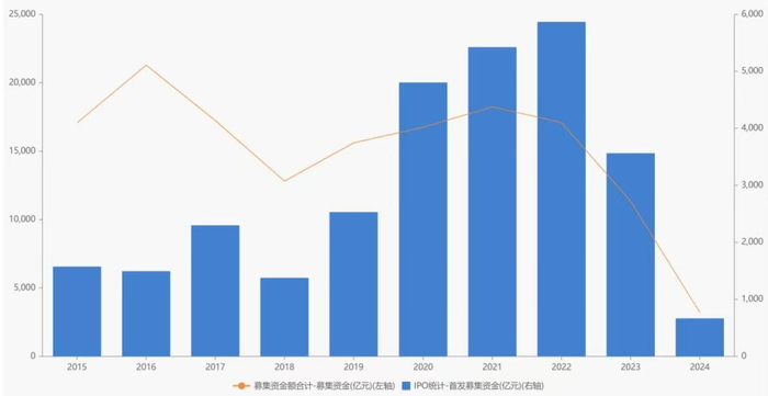 这一年,IPO(首次公开募股)创十年新低,并购重组市场迎来政策利好。2024年,A股IPO家数、募资总额创下近十年新低,IPO撤单数量显著增多。与此同时,6月,证监会发布“科创板八条”,9月,证监会发布“并购六条”,并购市场出现明显回暖。