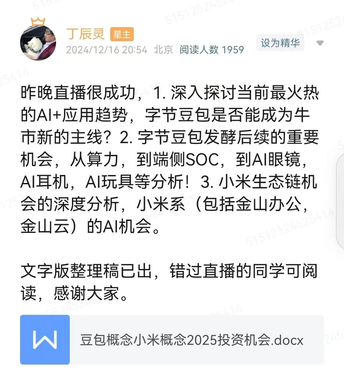 小米要all in大模型,小米股价新高,金山云连续大涨,12月16日直播专门聊了小米生态链!现在加入星球,好公司+好逻辑+好时机,现在加入可进群!