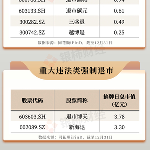 此外,还有新海退(002089.SZ)、退市博天(603603.SH)两家公司因触及重大违法类强制退市情形而结束资本市场之旅。两家公司分别于今年4月18日、4月25日被交易所正式摘牌。