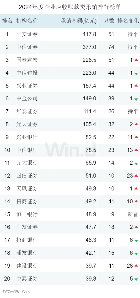 平安证券承销417.8亿元,位居榜首;中信证券、国泰君安位列二三。