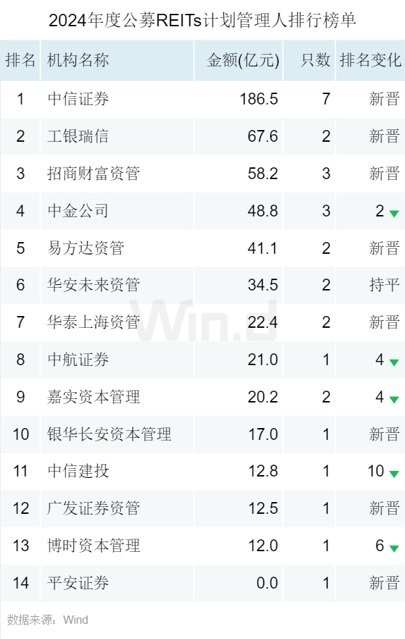 中国银行2024年度共承销136只项目,总承销金额546.5亿元,排名第一;中金公司承销了104只项目,总承销金额457.0亿元居第二位。