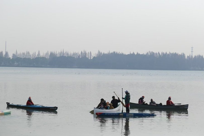 12月底,已经进入水上运动的淡季,但周末时仍有市民专门开车前来游玩,中午时分湖面上飘着不少皮划艇。一家俱乐部主理人告诉记者,他们的教练均已通过水上运动中心统一培训,当参与人数较多时,保证最前方有一名领队,最后方有一名押尾安全员,而且,随着华为员工的搬入,未来还有可能开展更多的团建项目。