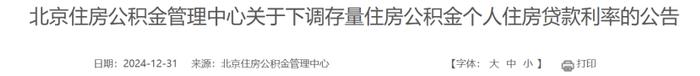 同日,北京住房公积金管理中心还发布了《关于下调存量住房公积金个人住房贷款利率的公告》。