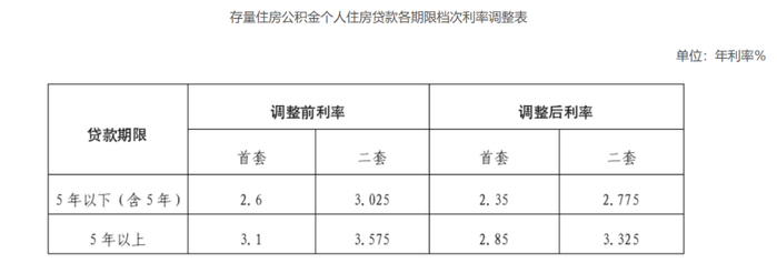 一是对于2024年5月18日(不含)以前发放的期限在一年以上的公积金贷款,自2025年1月1日(含)开始,执行调整后的公积金贷款期限档次利率。5年以下(含5年)和5年以上首套公积金贷款利率分别由2.6%和3.1%下调为2.35%和2.85%,第二套公积金贷款利率分别由3.025%和3.575%下调为2.775%和3.325%。