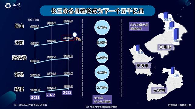 2024年,前一年距离5000亿元仅差不足40亿元的江阴,有望成为全国第二座GDP突破5000亿元的县级市。一旦成功,江苏将拥有两个“5000亿县”。
