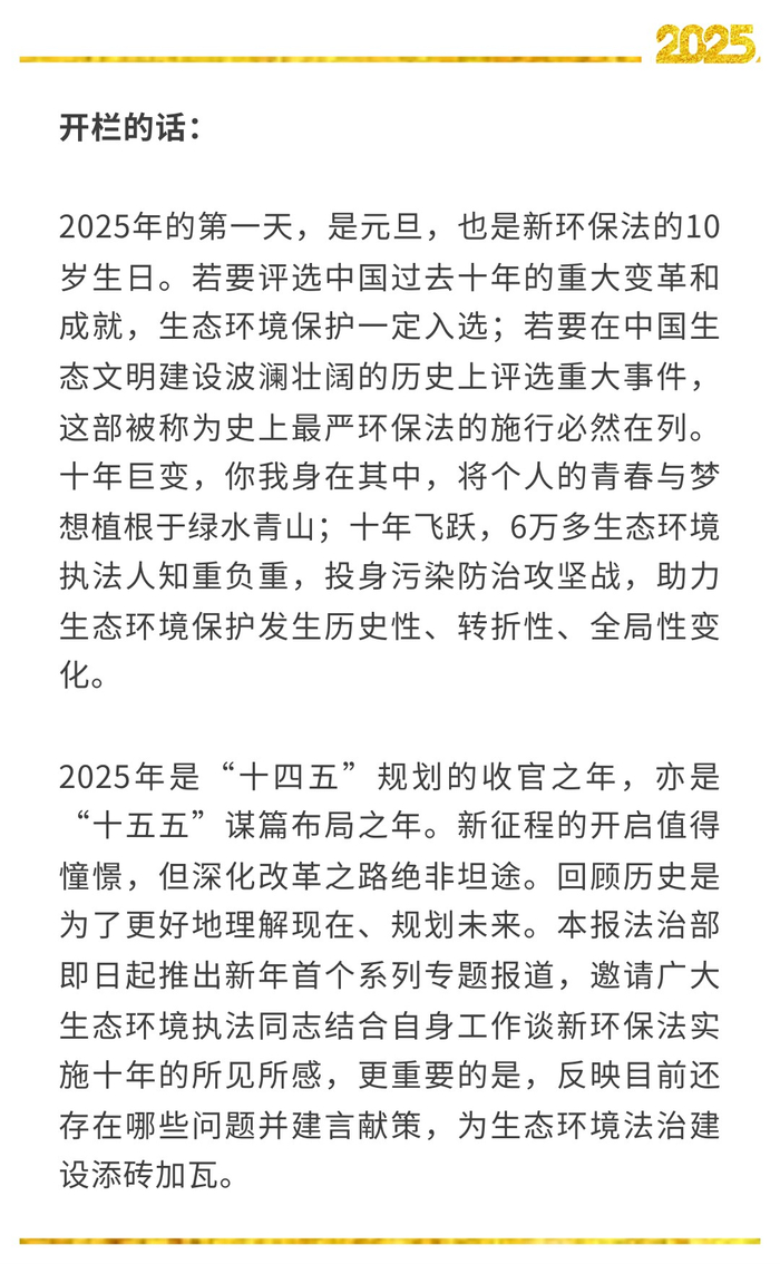 新环境保护法自2015年1月1日实施至今,已历十年。这十年,刚好也是我毕业到基层环境部门工作的十年,可以说,我们既是见证者,又是参与者。