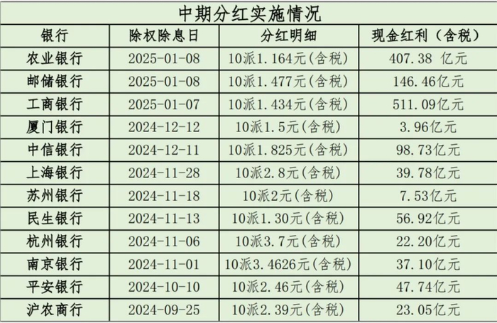 2025年首月,投资者将迎来多家上市银行总额超千亿元的中期红包。
