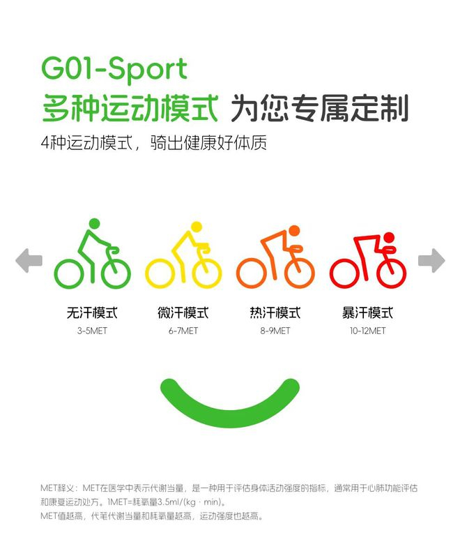 G01-Sport 配备独立的 AI 系统,可提供专属运动方案、智能心率保护、助力爬坡等功能。