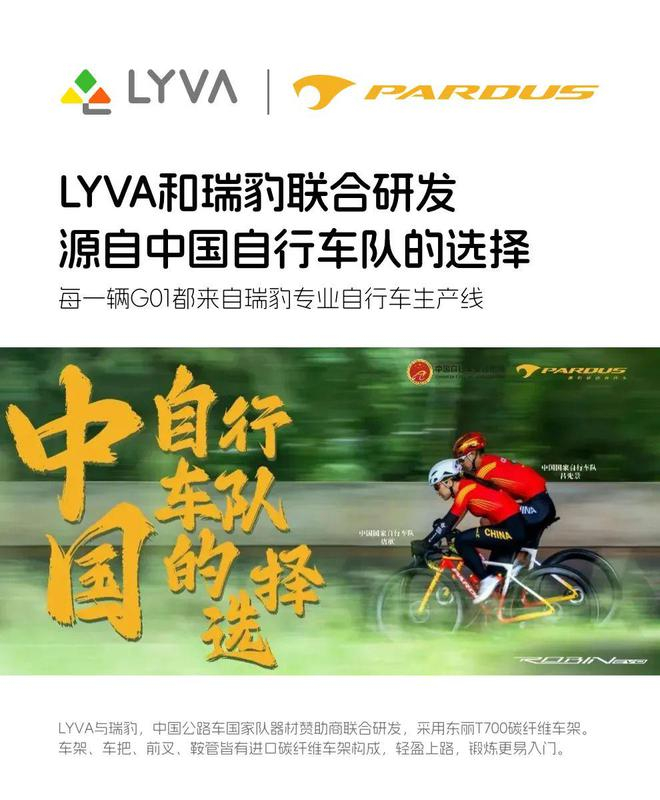 G01-Sport 由 LYVA 与瑞豹-中国国家公路自行车队的官方器材赞助商联合开发,采用日本进口东丽 T700 碳纤维材质车架。