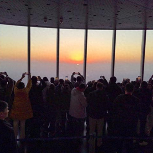 “上海之巅”观光厅拍摄日出的人群。 上海中心大厦供图