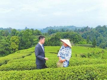 四川农商银行工作人员深入茶园开展“走千访万”活动。